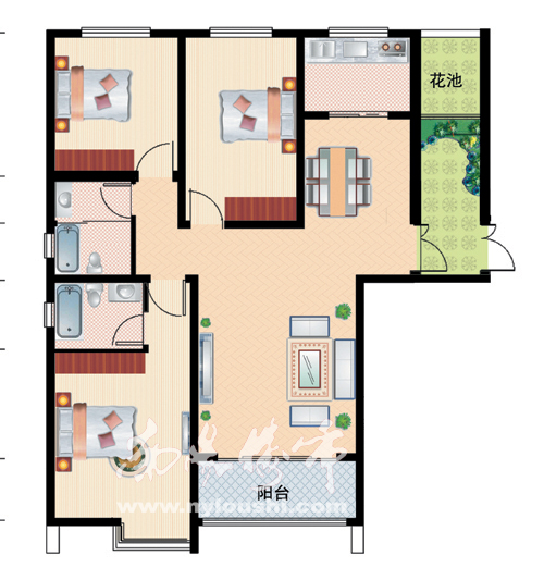 港岛·玫瑰园二期玫景天城,采用两梯三户的板式结构,面积107.76—146.51㎡, 户型有两室两厅、三室两厅两卫,格局方正,明厨明卫,户户朝阳,充分享受阳光生活。